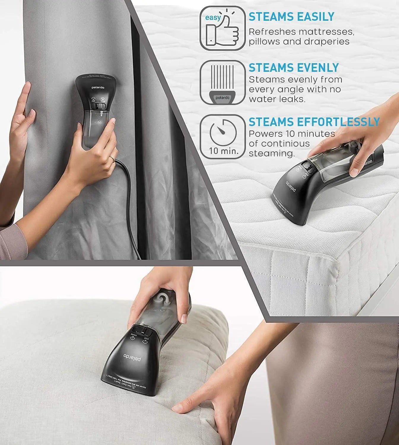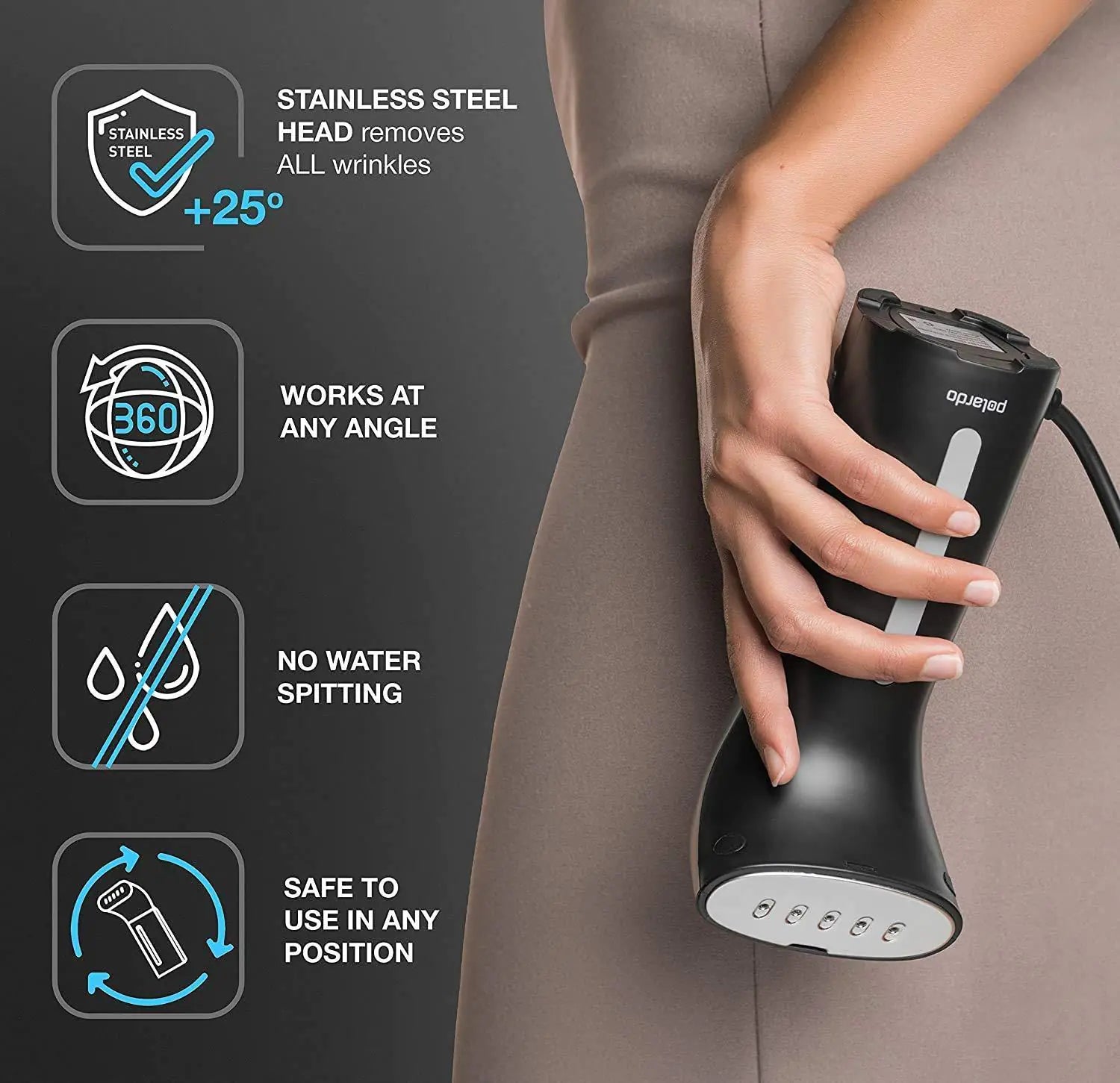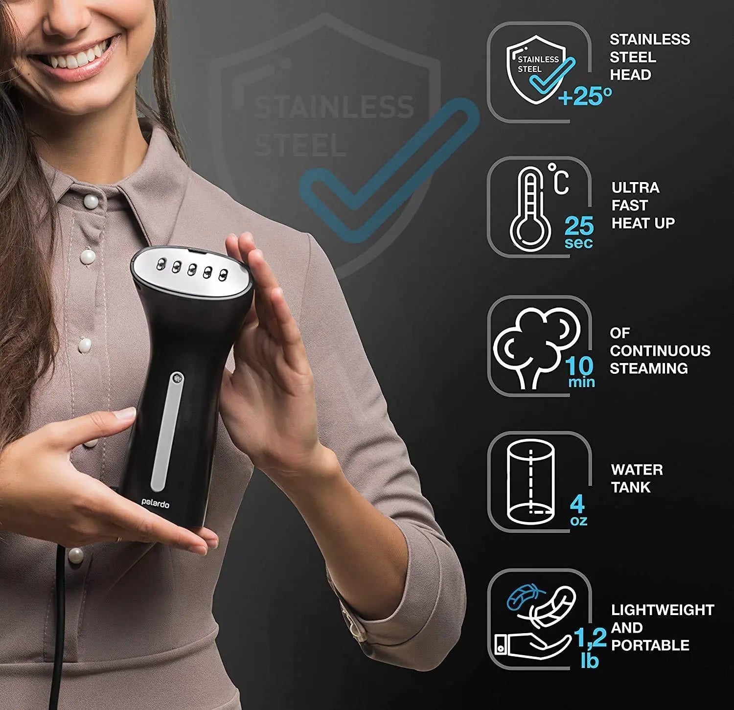 Steamer for Clothes Hand Held Portable Travel Garment Black Metal Steam Head